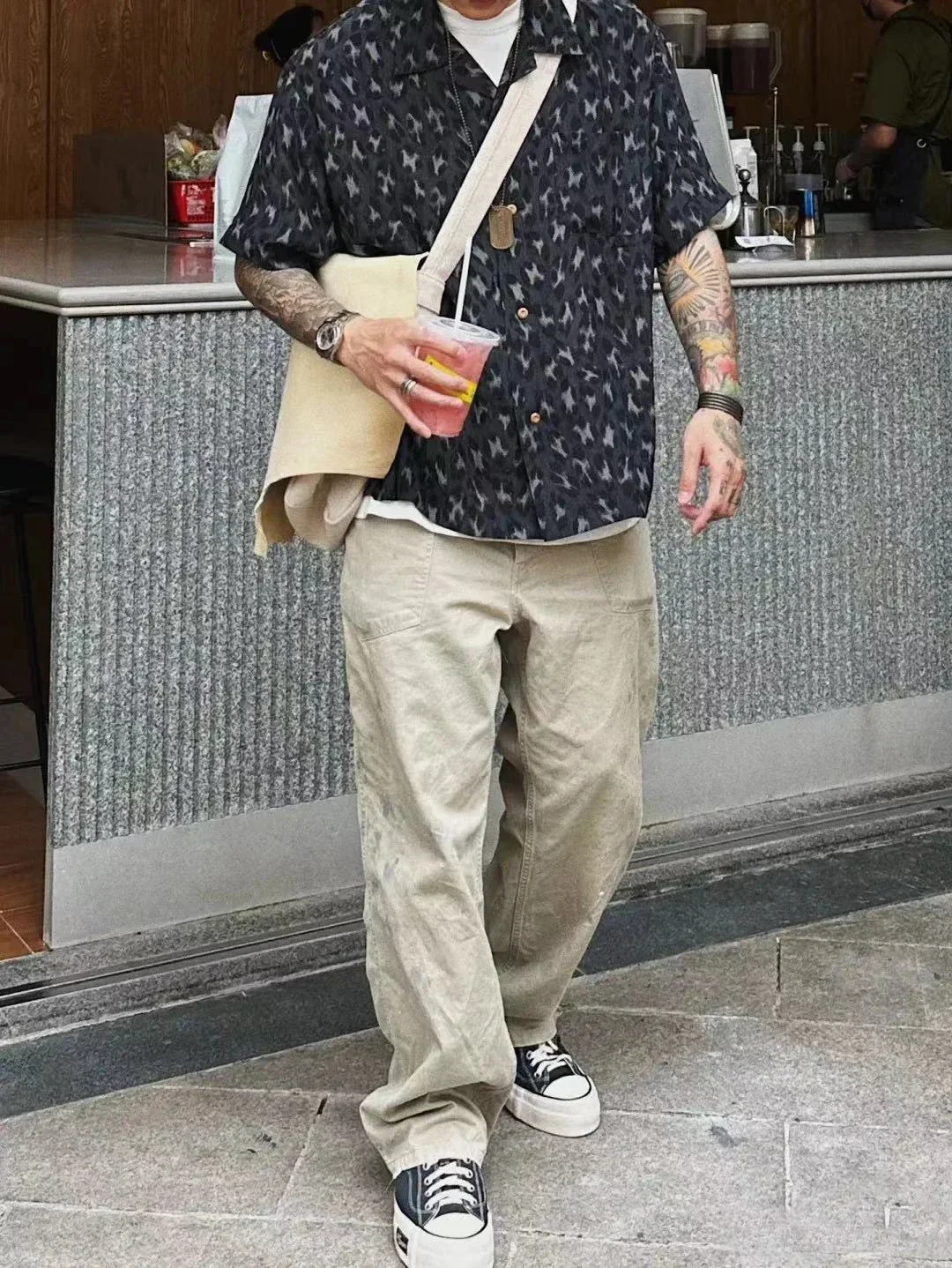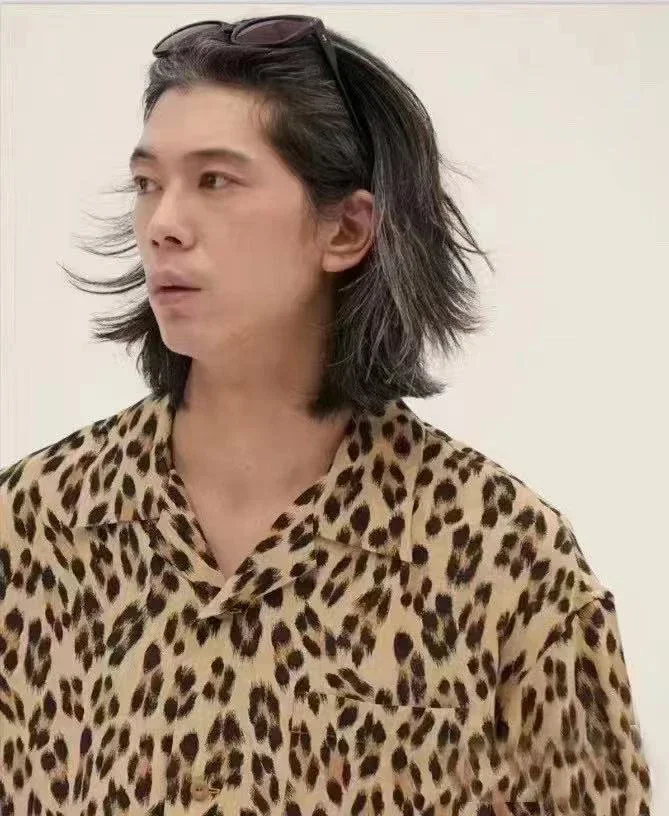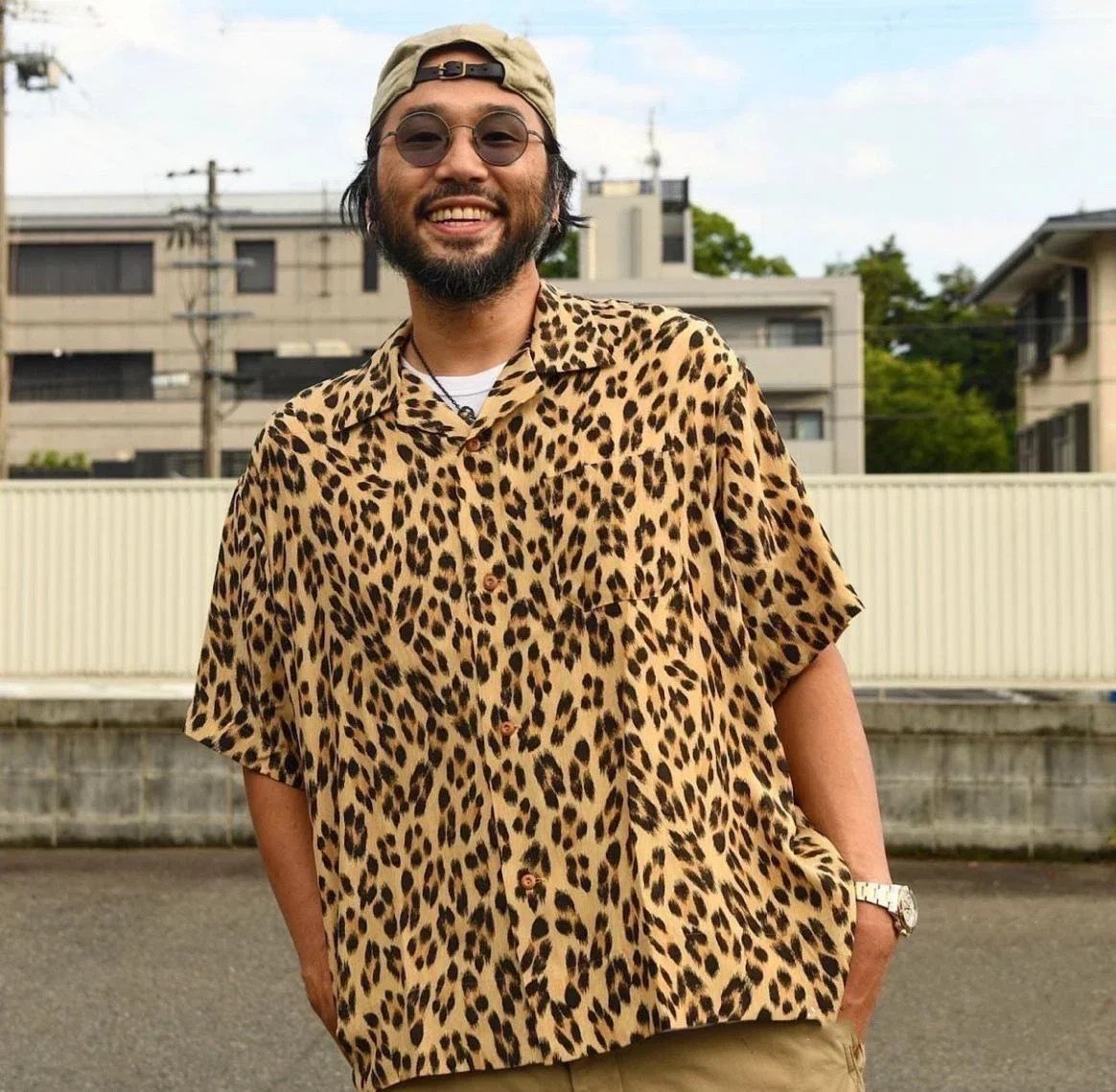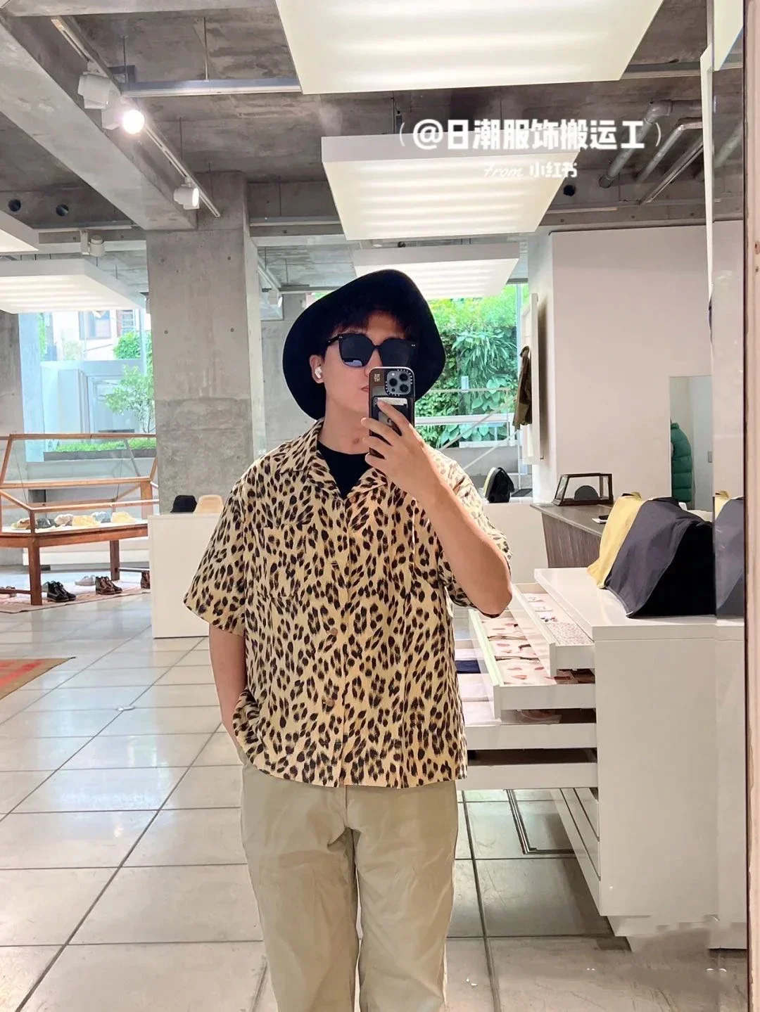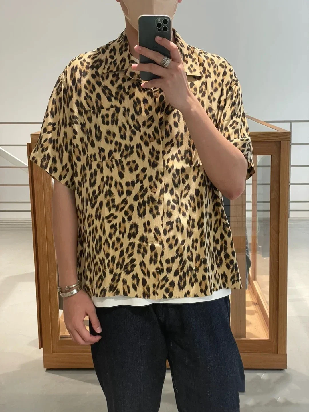 23ss Japanese Men and Women Casual Hawaiian Leopard Print Short Sleeved Cardigan Shirt