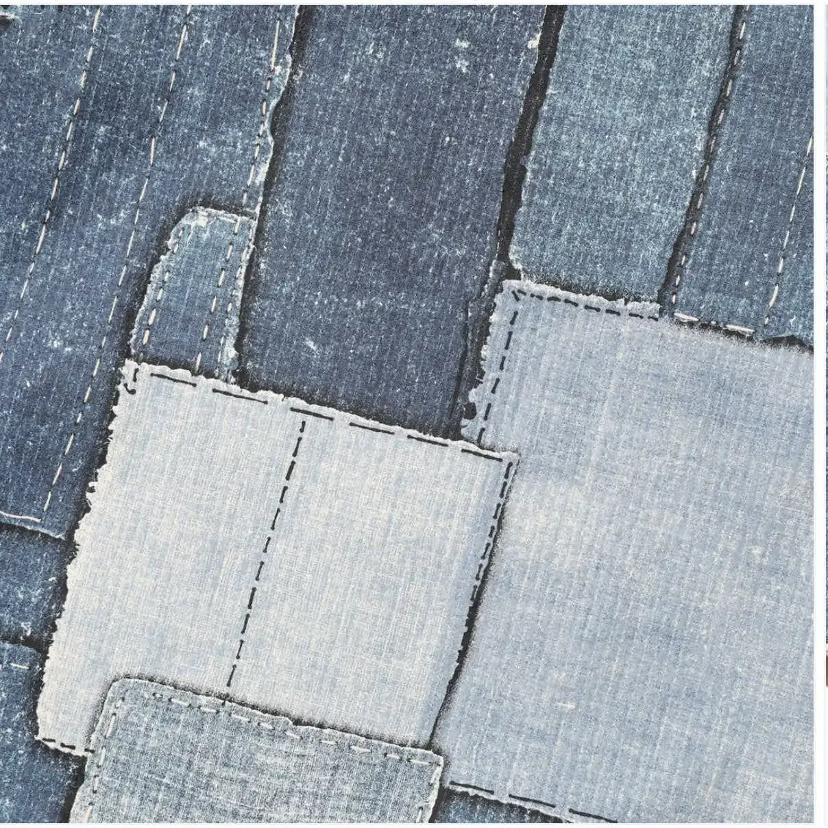 24AW JELADO Japanese Retro Men's and Women's Printed Denim Patchwork Collarless Loose Pullover Long Sleeved Shirt