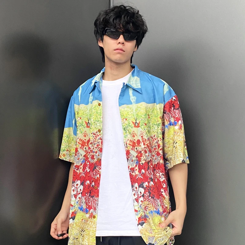24SS KAPITAL Hirata Kazuhiro Floral Print Japanese Style Full Printed Casual Short Sleeved Shirt for Men and Women
