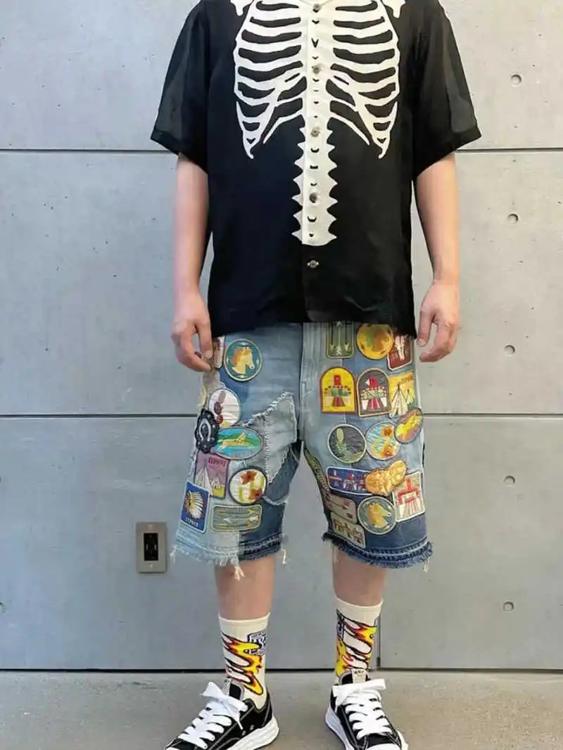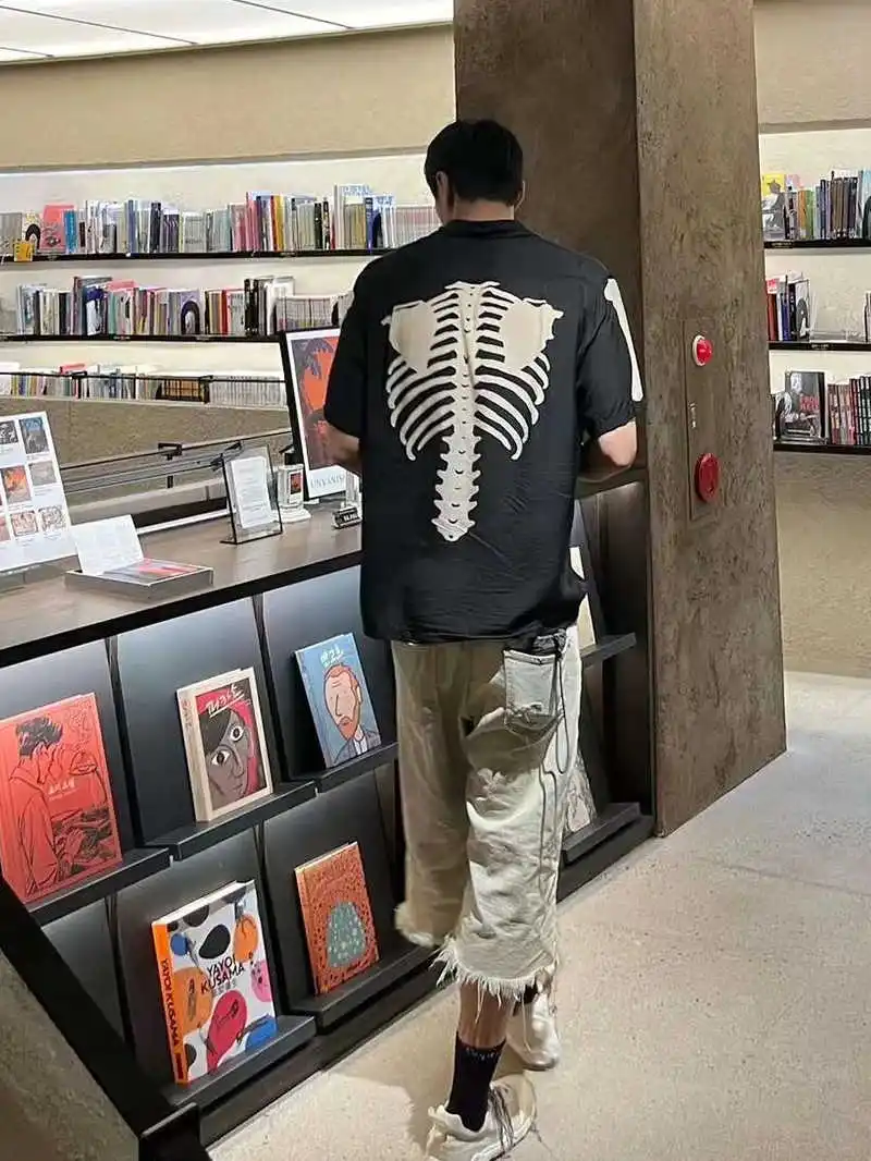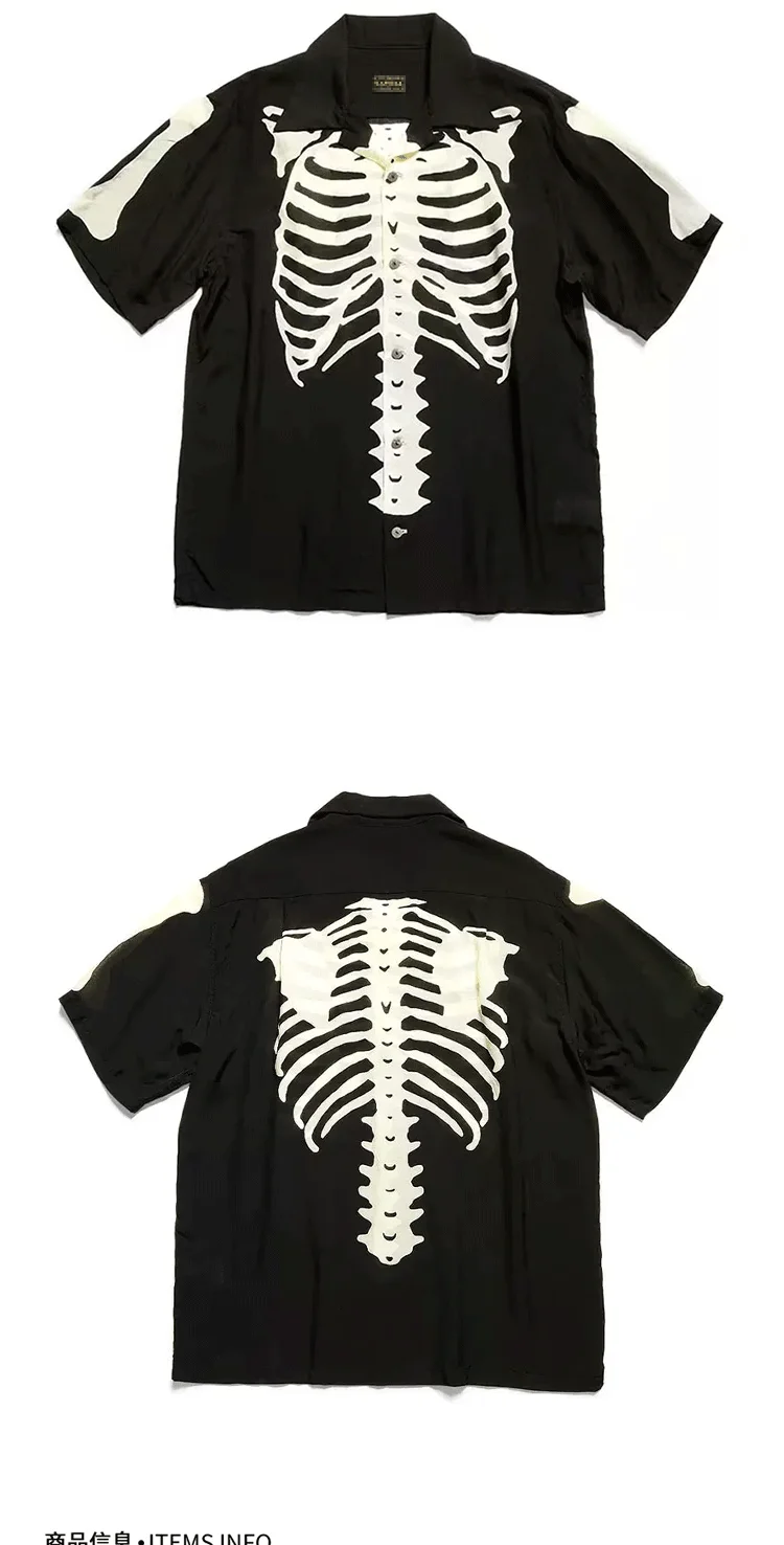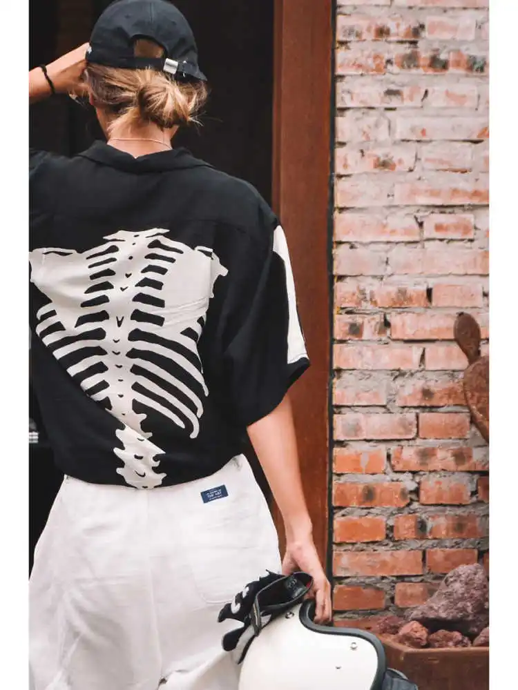 25SS Kapital Hirata Kazuhiro's Japanese Retro Bone Print Unisex Loose Short Sleeved T-shirt for Men
