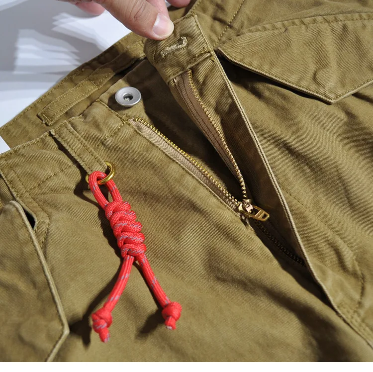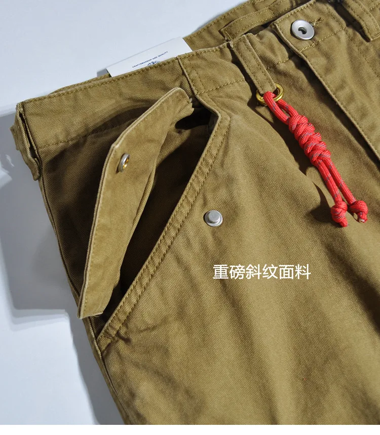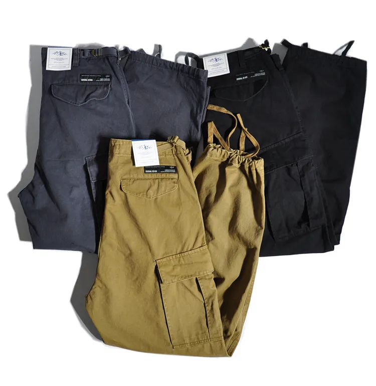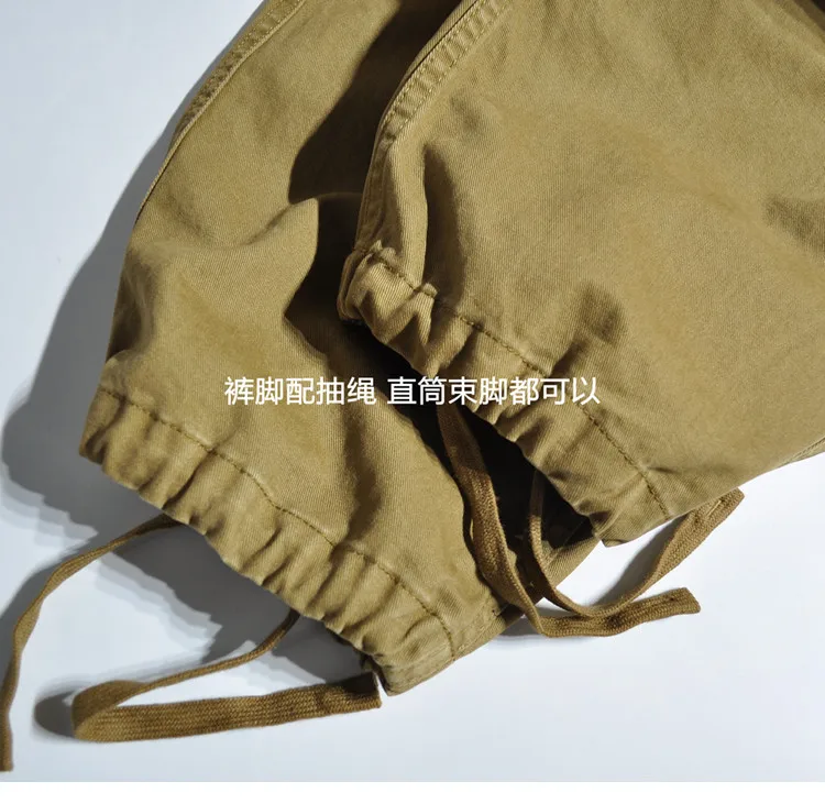 American Retro Outdoor Work Pants Loose Straight Wide Leg Casual Multiple Pockets and Ankle Binding Pants