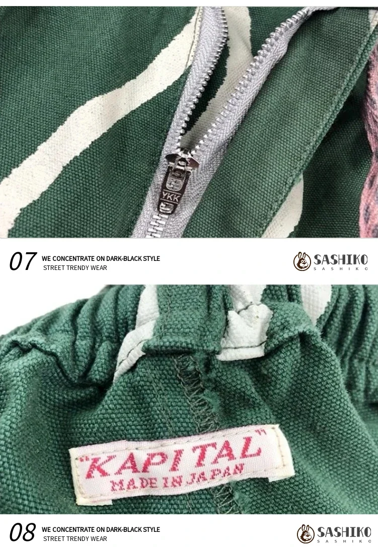 KAPITAL Hirata Hohiro Cotton Hemp Water Corrugated Printing Japanese Trend Tether Men's Casual Shorts