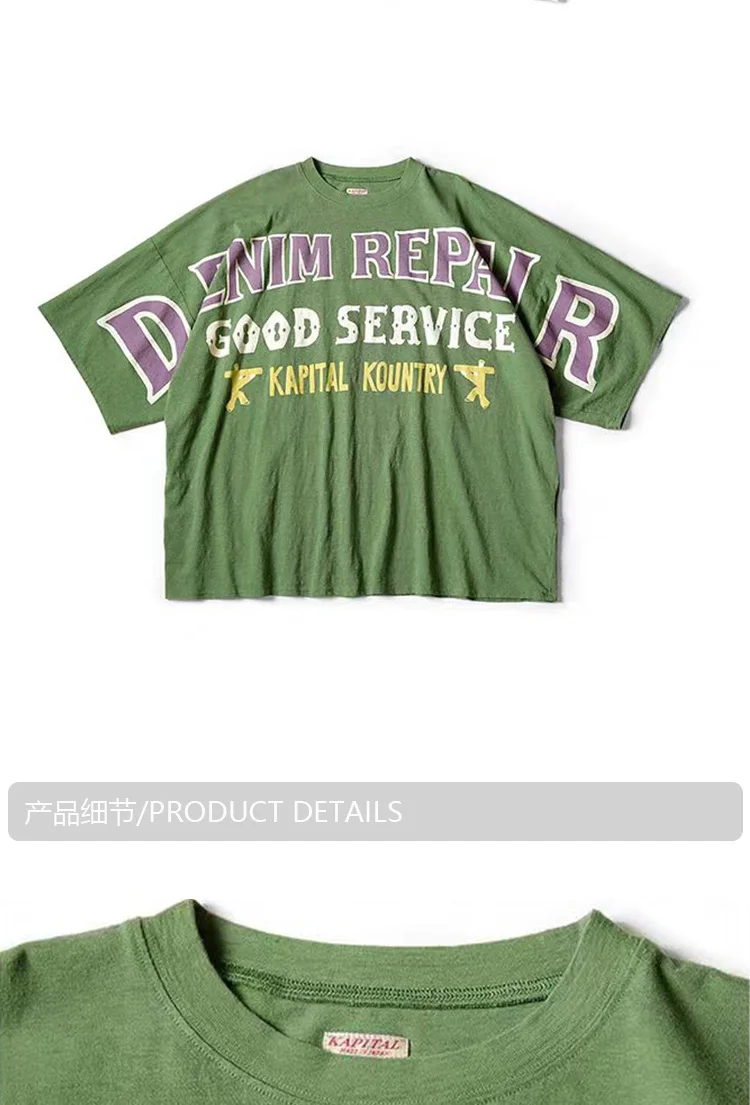 KAPITAL Hirata Japanese Men's and Women's Three-color Letter Printed Loose Casual Round-neck Short-sleeved T-shirt