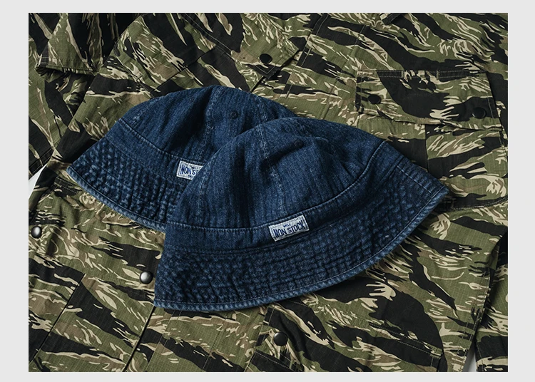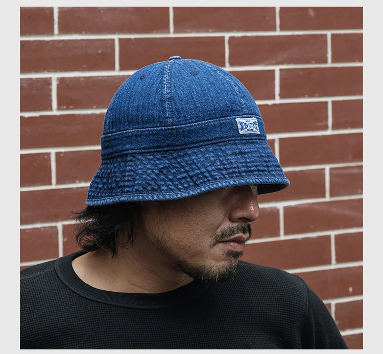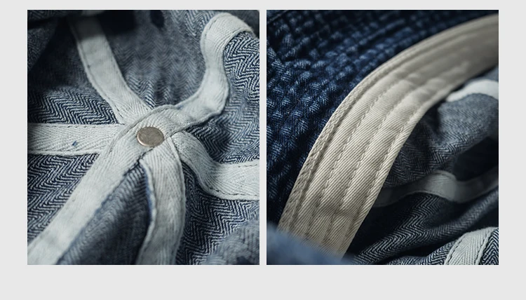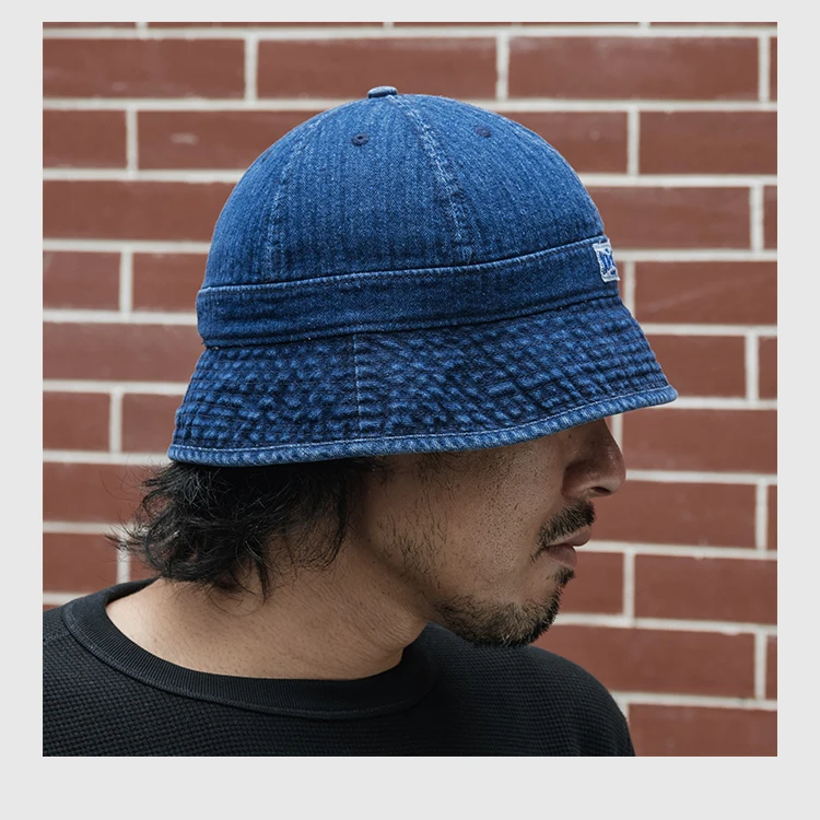New Denim Fishbone Herringbone Washed Fisherman Hat Blue Dome Fishing Basin Bucket Hat